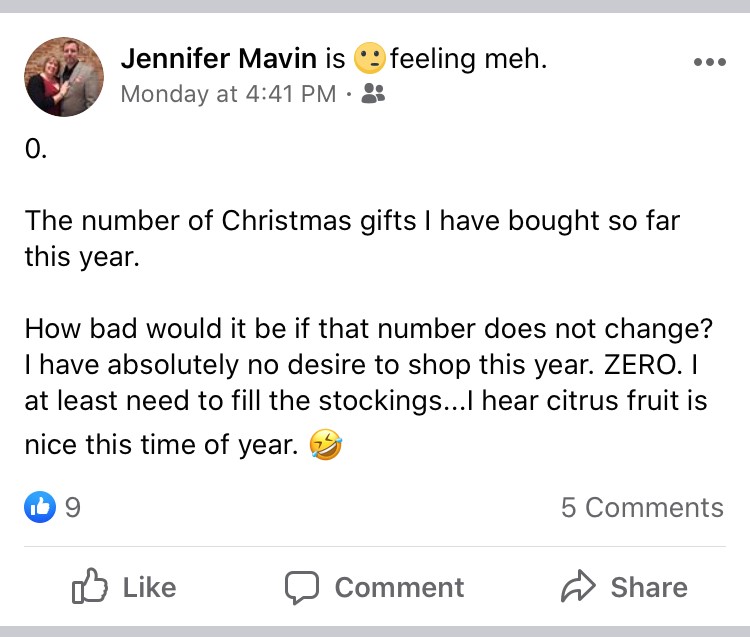 On some level I have made peace with the fact this year is just gonna be a year off balance. I’ve given myself permission to shed tears when needed (like as I wrote that whole last paragraph). I’ve acknowledged that whatever gifts can be purchased, whether because of time or money constraints, will be enough. When my inner critic starts to raise her voice about my level of Grinchiness this year, I’m trying to calmly remind her to be gentle with her thoughts and words. And I haven’t lost sight of the fact that the greatest gift I will get next week is time. Time to spend with my little family in our old perfectly, imperfect house, with our critters, simply loving each other, remembering our blessings, and talking about our hopes and dreams for the new year to come. Days spent in PJs with hot cocoa in hand and a board game or puzzle permanently taking up space on the dining room table. Time to just be, and to just be together.